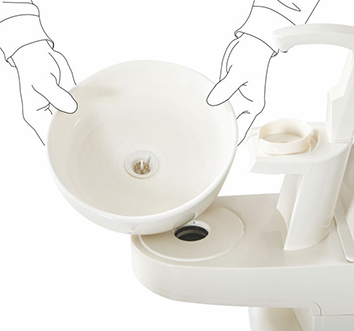The spittoon is detachable for easy cleaning, it can be rotated by 90°for patients to spit.
