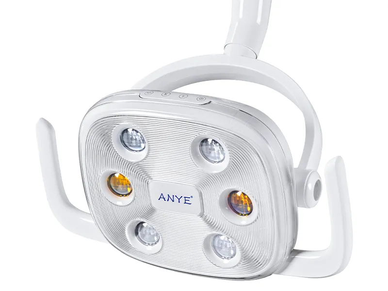 Philips brand lamp beads, dual-color light source. Specially designed for dentistry, wide projection angle, high illumination adjustable from 8,000 to 30,000 , infrared sensor switch or touch switch controls stepless dimming and color temperature (5000K±10%). The light spot is adjusted to the rectangular light spot required for oral surgery.